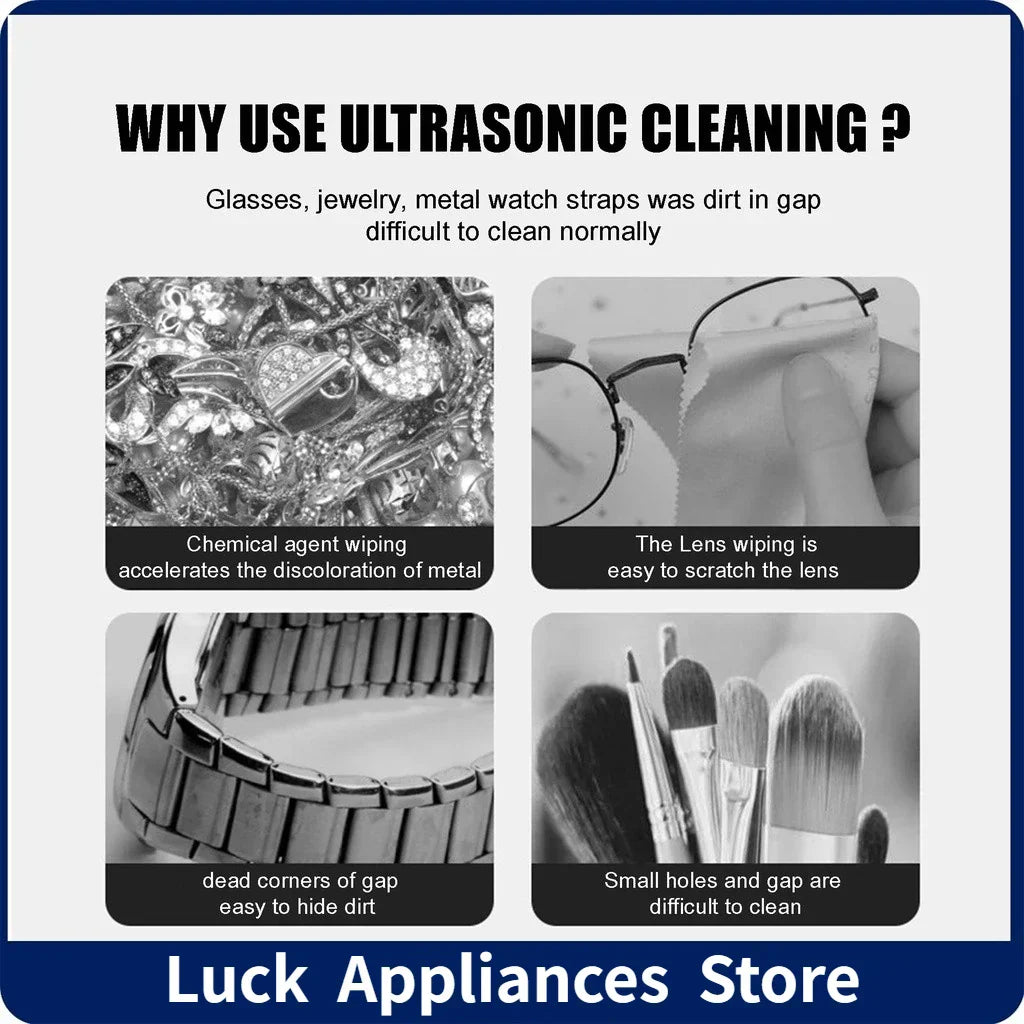 Widely Used: With a large capacity tank, you can easily meet your various cleaning needs, making it more convenient to use. Cleans glasses, jewellery, makeup brushes, razors, toothbrushes, nail clippers, combs, and other items.